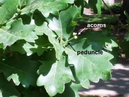 Trees & Shrubs as Quercus pedunculata. Note the young acorns